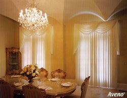 These unique vertical shades are made from PVC, but draped in a voluminous sheer fabric to give a soft effect to the lighting.
